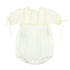 The Margaret Bubble features exquisite ecru lace and satin ribbons, enhanced by delicate pintucks for a refined finish. This elegant piece is perfect for portraits, church ceremonies, weddings, and other special occasions, adding timeless beauty to any event.