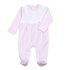 Crafted from premium Pima cotton, this charming footie features delicate pink stripes accented with a distinctive white bib-style button detail across the chest. The soft, breathable fabric ensures comfort for sensitive newborn skin, while the thoughtful design makes it an ideal choice for hospital bag essentials or a memorable baby shower gift. Perfect for those first precious moments.