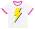 A classic ringer tee trimmed with hot pink and embellished with a subtle but sparkly lightening bolt design